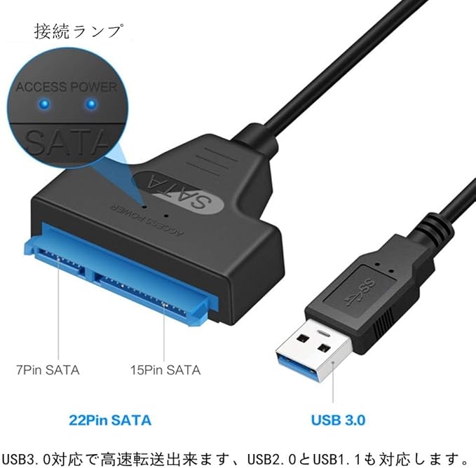 【強大な互換性】2.5インチのSATAハードデイスクやSSDを、USB3.0接続ハードディスクに変換できるアダプタです。SATA / SATA2.0 / SATA3.0のインタフェース対応できます。USB3.0接続、5 Gbpsのスピードに達することで、高速回転のハードディスクやBlu-ray書き込みドライブなどの能力を最大限に発揮します。
