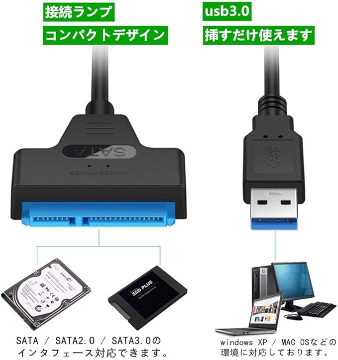 【コンパクトデザイン、簡単に接続】コンパクトで軽量で持ち運びが簡単です。SATA端子に接続するだけで簡単に接続できるので便利です。内蔵HDDを外付けUSBストレージとして簡単に使えます。windows XP / MAC OSなどの環境に対応しております。