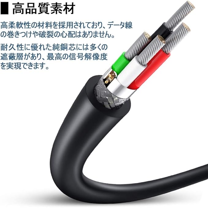 【耐久性抜群】内部に密閉型のアルミシールド処理を施した三重シールド構造が信号の歪みや伝送ロスを効果的に抑えます。強力なPVC被覆は日常の使用における衝撃や引っ張りにしっかりと耐えるため、屈曲による内部のダメージを最小限に抑え、長期間安定した性能を提供します。