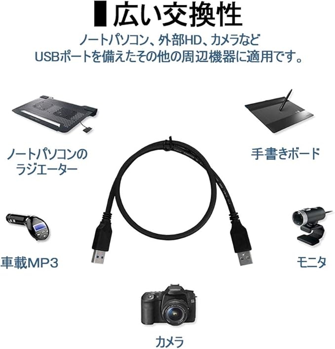 【広い交換性】多様なデバイスに対応しているため、1本で複数の接続ニーズを満たすことができます。ノートパソコンやその他USBポートを持つデバイスとの接続だけでなく、延長ケーブルとして使用することで、より柔軟な環境構築が可能になります。