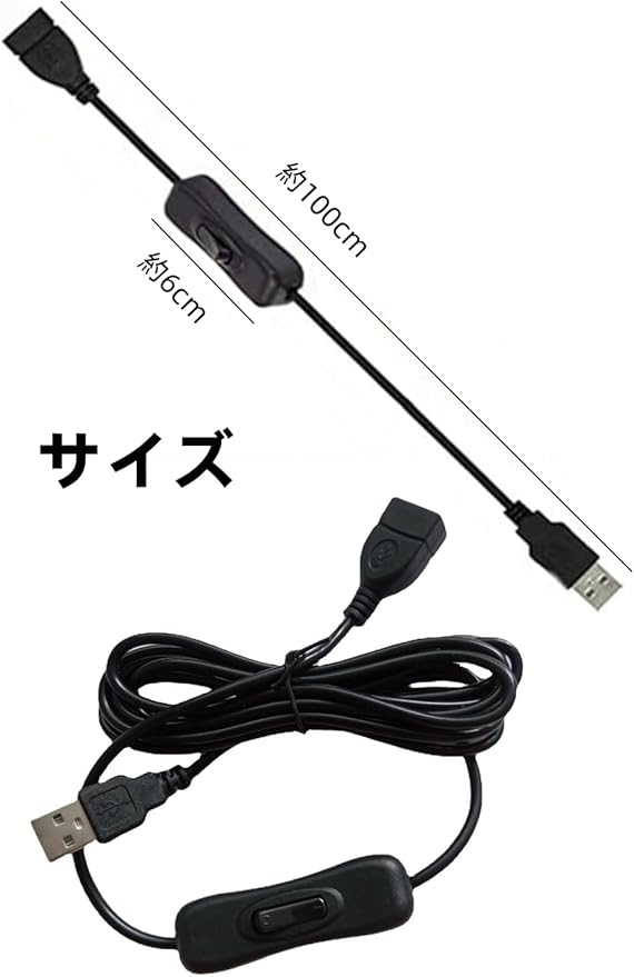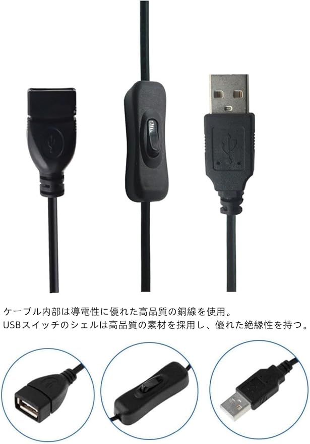 【パッケージ内容】USB電源コードスイッチ延長ケーブル