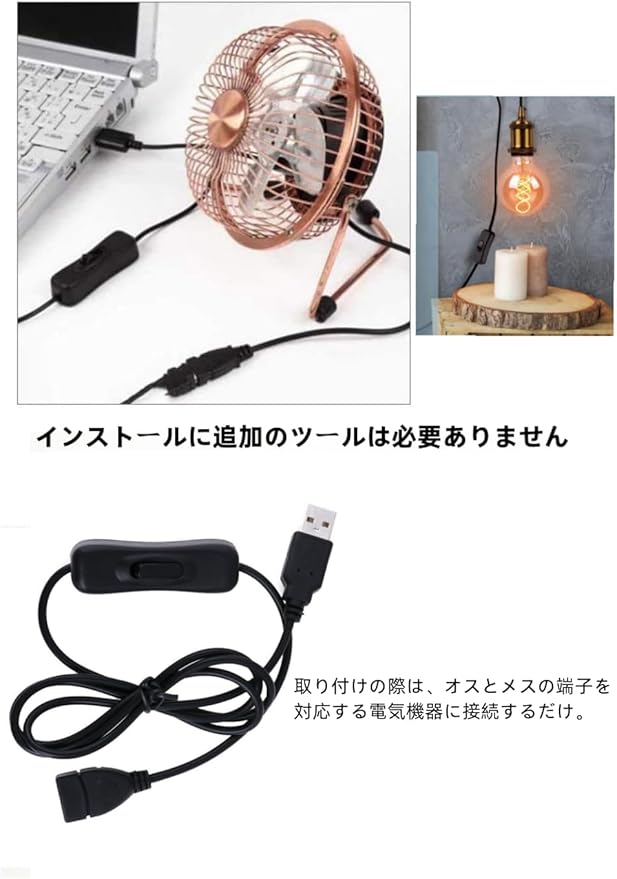 【プラグアンドプレイ】USB A(オス) とA(メス)の端子が接続できます。よくある通常のUSB端子です。取り付けの際は、オスとメスの端子を対応する電気機器に接続するだけ。インストールに追加のツールは必要ありません。ボタンを押すだけでオン/オフ可能。