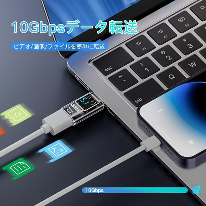 3.【高速データ伝送】理論上のデータ伝送速度は10Gbpsに、同期にかかる時間を短縮できます。 映画や音楽などをわずか数秒で転送できます。