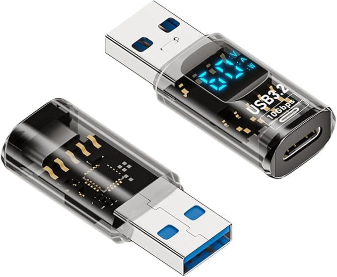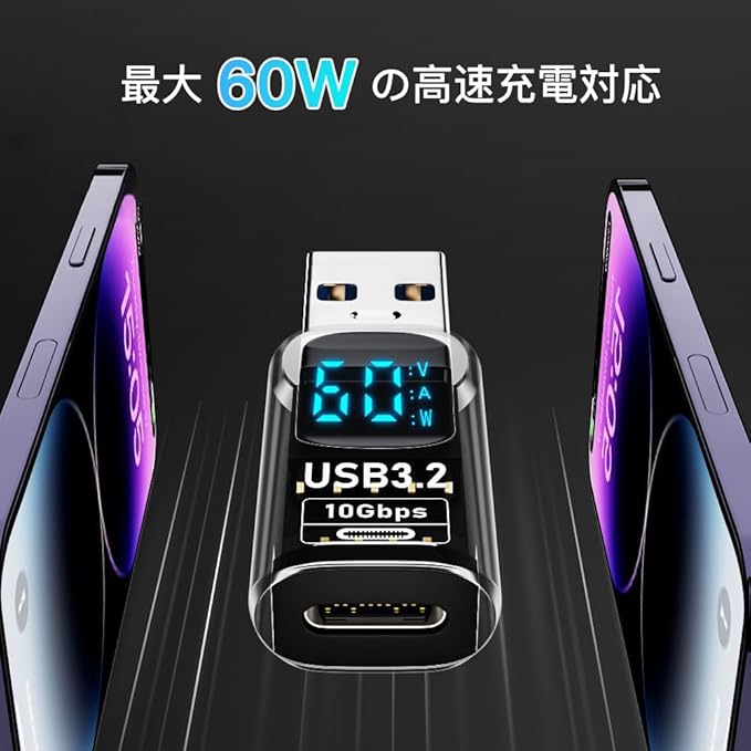 限定商品 USB 3.0 アダプタ 2個セット LEDワットスクリーン表示 USB Type C (メス) to USB 3.2 (オス) 変換アダプタ 小型 軽量 PD対応 60W急速充電 10Gbps 高速データ伝送アダプタ 延長電源データ ビデオアダプター ライトブラック