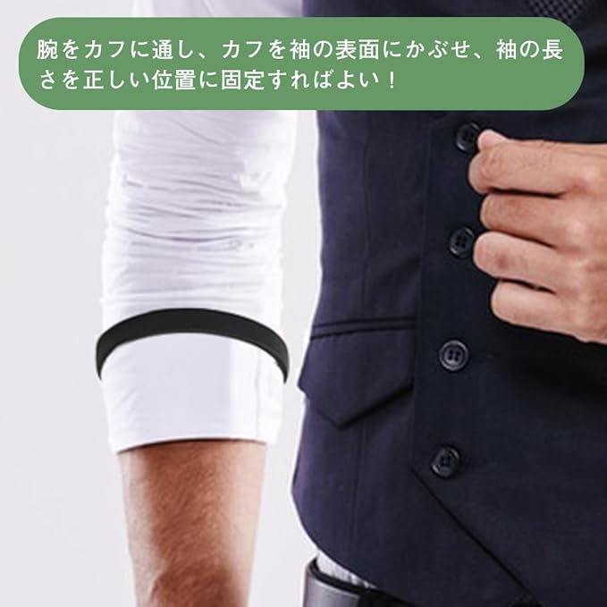 【着脱簡単】締め付け感が少なく伸びが良い、袖が長いワイシャツに簡単に対応、 素早く袖丈を調整します。腕に通すだけで、お好みの袖丈に簡単調節できます。