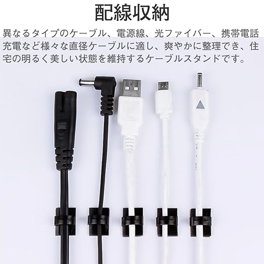 5.幅広い用途:ネットワークケーブル、コンピュータケーブル、USBケーブル、TVケーブル、クリスマスライトケーブルなど、さまざまなケーブルの整理に非常に便利です。ケーブル以外にも壁に取り付けてカギを掛けたりアクセサリーやメガネ、サングラスなどの小物掛けて見せる収納、整理にも大活躍!家庭、オフィス、車などで幅広く使用されています。