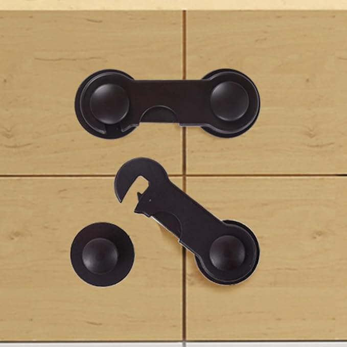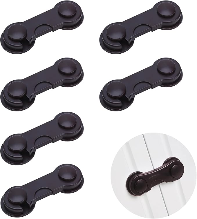 ドアロックストッパー キャビネットロック 6個入り 回転式 穴あけ不要 使用簡単 家具を傷つけない ドア開け防止 いたずら防止 ドア キャビネット 引き出し 食器棚 戸棚 扉 窓 安全ロック対策 (コーヒー色)