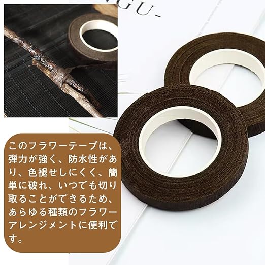 フラワーテープ フローラテープ 2巻入 1.2cm*30m 防水 花芸飾りテープ 手芸 DIY材料 生花 造花 花束用 花の茎のラッピング用 花屋用 (ブラウン)