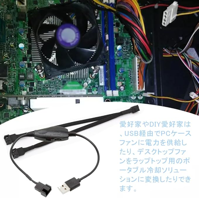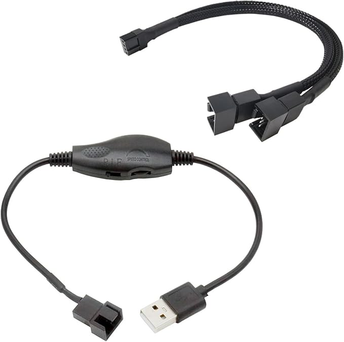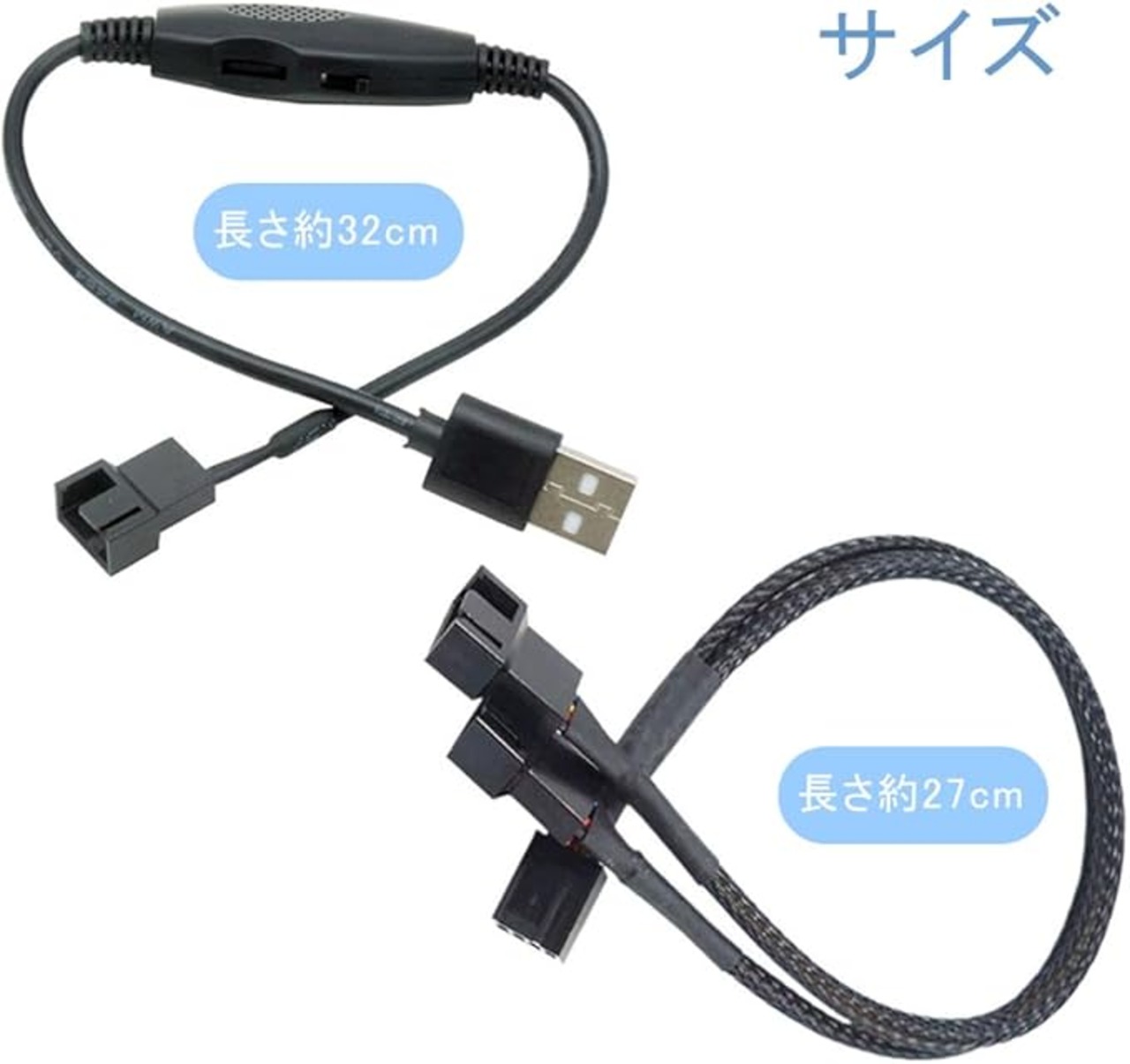 電源アダプターケーブル PCファンパワーアダプター 1分2 編組スリーブ USB スイッチケーブル USBから4pin 5V-12V 調整スイッチ付き コネクタコンバーター 安定 データ伝送 USB A - デュアル 3ピン/4ピン (黒色2)