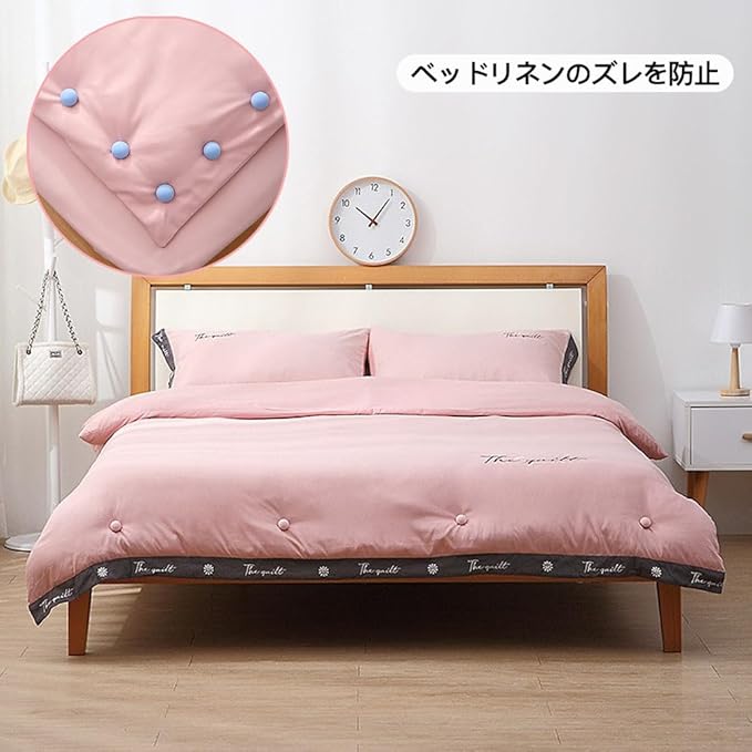 【ベッドリネンのズレを防止】布団を通してクリップの反対側の穴に釘を入れ、ボタンを押すだけで固定できます。布団の四隅に取り付けて、布団のずれを防止できます。