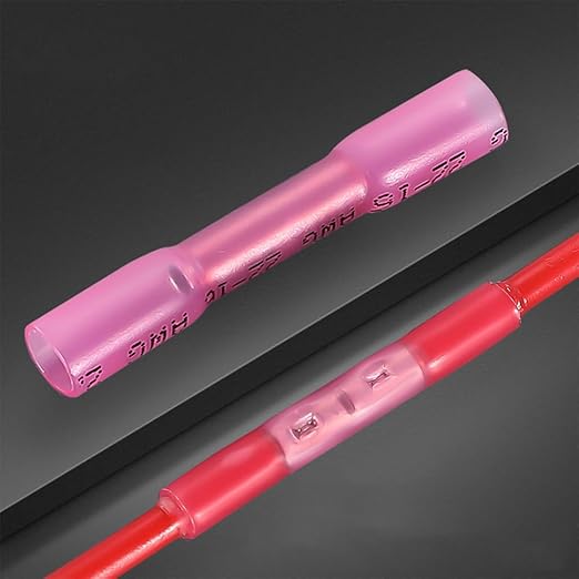 圧着端子 熱収縮防水圧着スリーブ 50個セット 配線接続 圧着 電気絶縁 防水 二層構造 丈夫に接続 耐久性 初心者 家電系 電工系 車 船 バイクの電装系 収納ケース付 (赤)