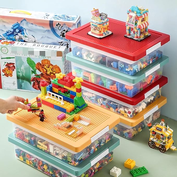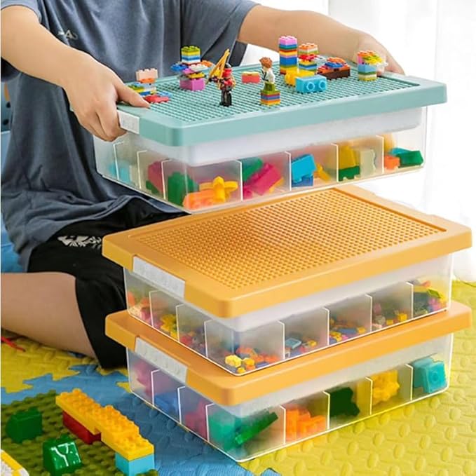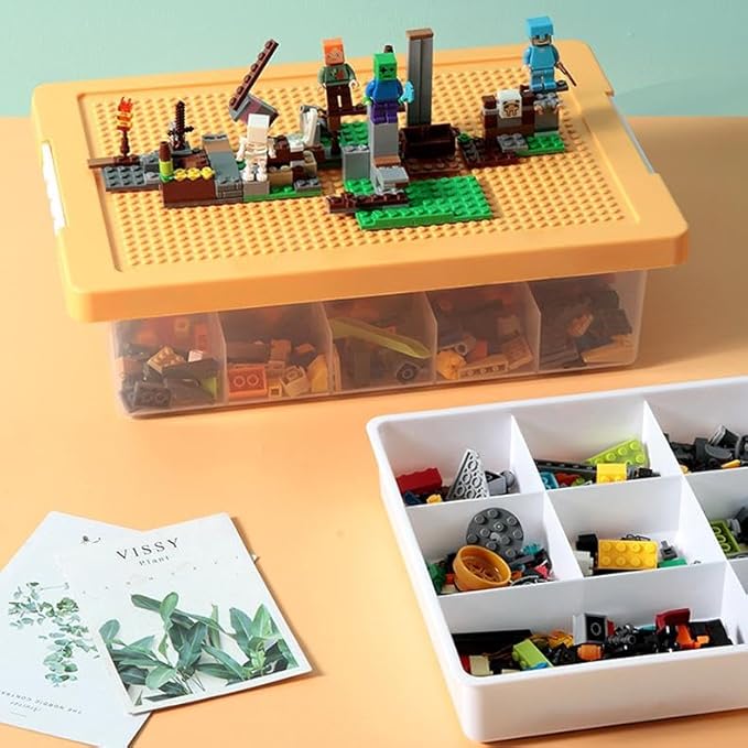 多機能収納ボックス ブロックベース ビルディング積み木収納ボックス おもちゃ箱 仕切り 2層おもちゃオーガナイザー 収納ケース レイヤードグリッド 雑貨 透明コンテナ 多機能 大容量 整理ボックス *ブロックは付属しません (イエロー)