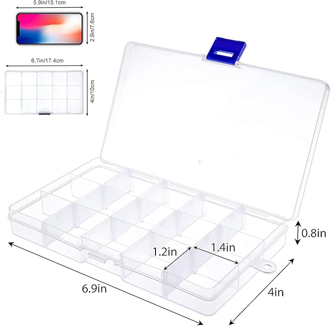 プラスチックの箱のサイズ:(17cm x 9.8cm x 2.2cm)。
