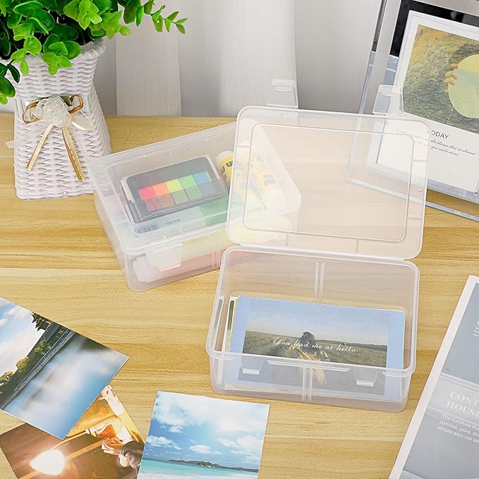 Sumnacon 4個セット収納ケース 小物収納ボックス プラスチック製収納ケース 多機能収納 分類収納 仕切り 蓋付く カード収納 文房具収納 写真収納 縫い物収納 テーブル収納箱(ホワイト) (4)