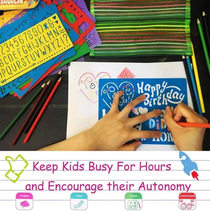 Copeflap ステンシルシート 20枚組 手帳 テンプレート 定規 絵柄 描画 数字 英字 (A)