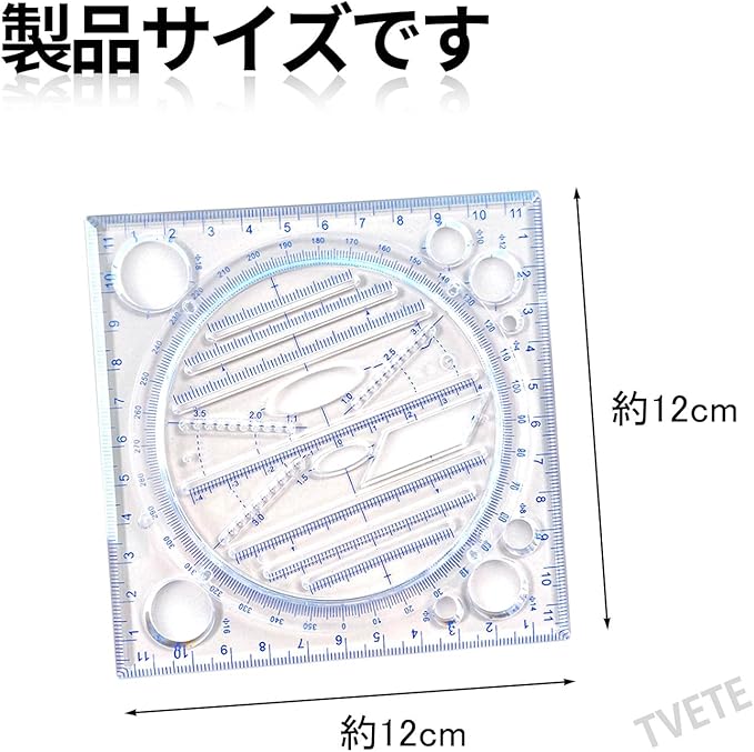 商品仕様:長さ12cm、幅12cmの家具建築用定規、色はブルー。 円形、三角形、六角形、四角形の多目的なデザインで、子供にも大人にも適しています。