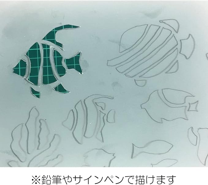 ペット樹脂製で裏面が梨地になっており、鉛筆、サインペンなどで下絵が描けます。