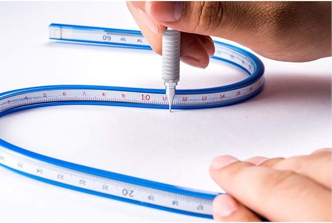 耐久性・弾力性・復元性に富んだインクエッジ付曲線定規。曲げ戻りが極めて少なく、任意の曲線が細かく自在にとれます。側面に目盛が付いています。