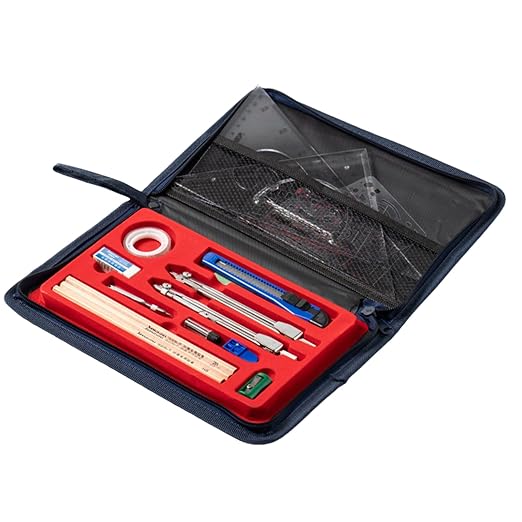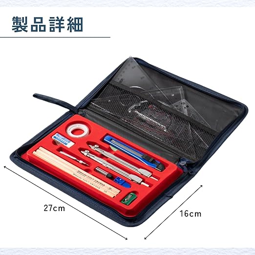 ideamall 製図セット コンパス 鉛筆 定規 文房具 ケース付き 持ち運び