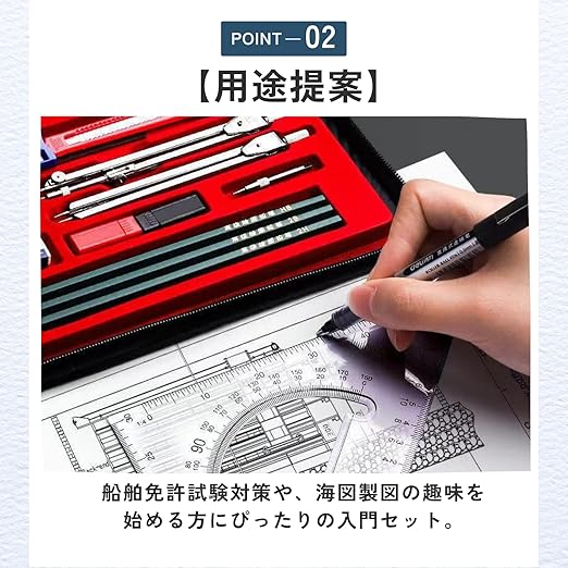 【用途提案】船舶免許試験対策や、海図製図の趣味を始める方にぴったりの入門セット。