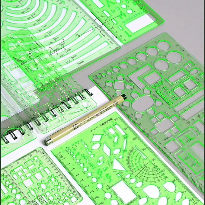 【広範な応用】このセットは測定と図面に必要なすべてを含み、学校、オフィス、家庭で芸術設計、点数測定、建築テンプレート、建築、ネットワーク技術、図面テンプレートを行うのに最適である。