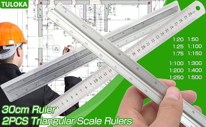 縮尺定規 Tuloka三角スケール 12種類の縮尺目盛 建築図面用 1/20 1/25 1/50 1/75 1/100 1/150 と1/100 1/200 1/250 1/300 1/400 1/500