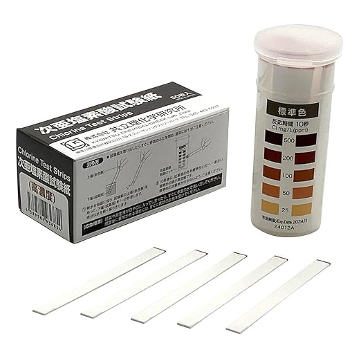 pH調整はほとんど不要で、試験紙を検水へ浸すだけです。標準色まで浸すので、着色水でも測定することができます。