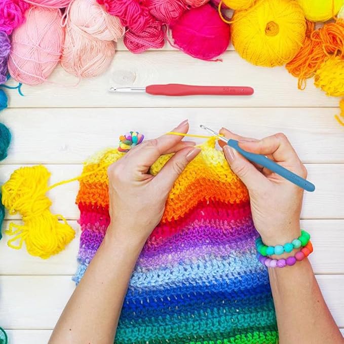 【45点編み針セット】見るだけで編み物が楽しくなってしまうカラフルなカギ針セットです。素人にも玄人にもお買い得な45点セットの編み針手芸工具です。
