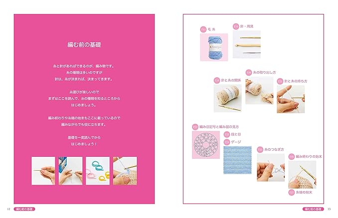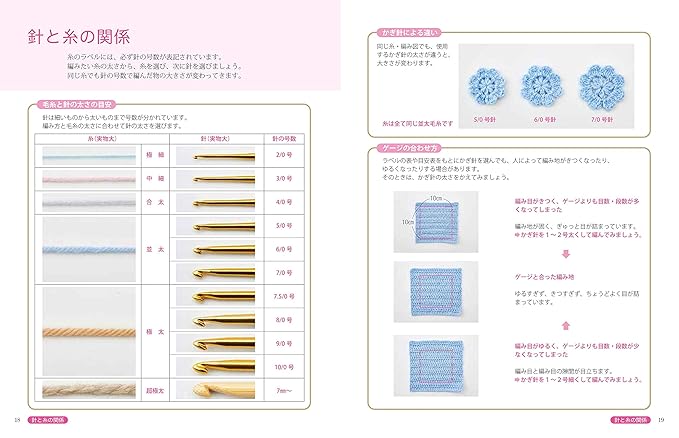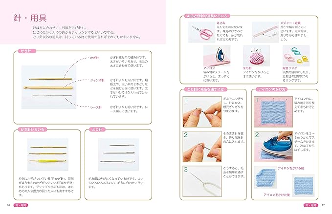 針や用具について、針と毛糸の関係性、糸の出し方、