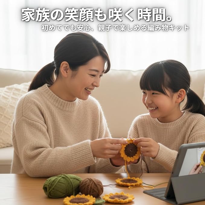 編み物キット ひまわりの編み物 【日本語説明書・動画解説付き】 かぎ針編み 手編みセット 置物 ニットフラワー インテリア 飾り ギフト 玄関飾り