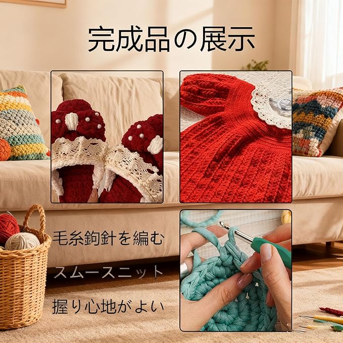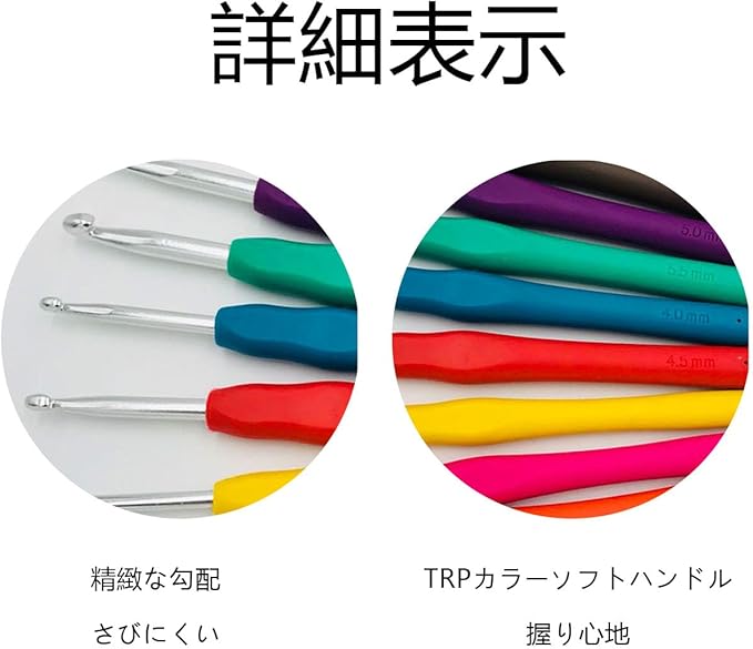 【快適で効率的な編成装備】熱可塑性ゴムカラーソフトハンドル設計を採用し、グリップ感が快適で使いやすく、12 本の鉤針は異なる編成ニーズを満たす。酸化フックは防錆性があり、小型カウンタを組み合わせて、ストラップ、バッグなどの編み物の創作をより効率的にする