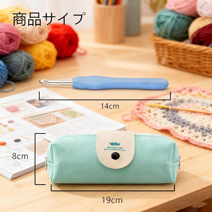 【携帯用実用編みセット】このかぎ針編みセットには 12 本の虹熱可塑性ゴムソフト柄かぎ針が含まれており、19*6*8 cm の緑の収納バッグを組み合わせており、持ち運びに便利です。道具がそろっていて、操作が簡単で、初心者でもベテランでも最適です