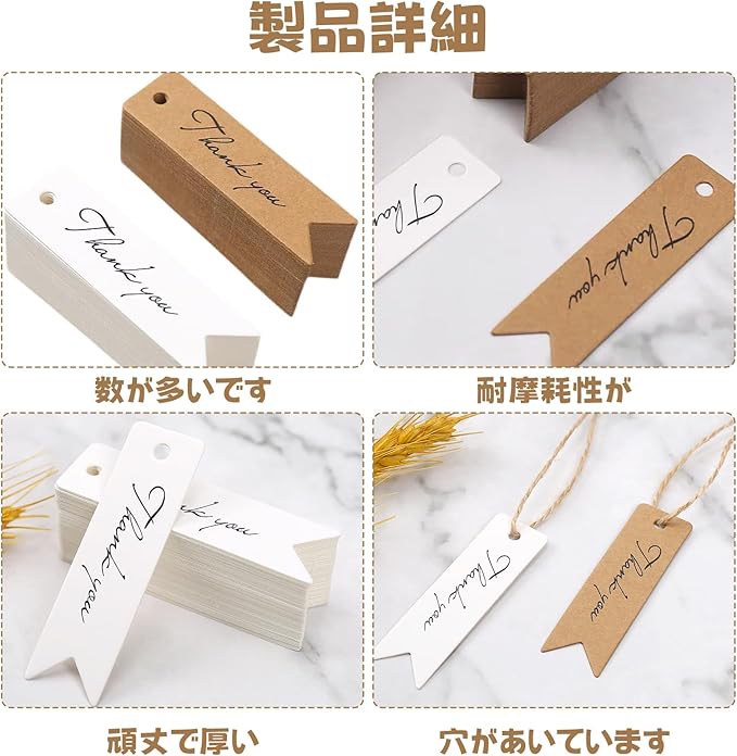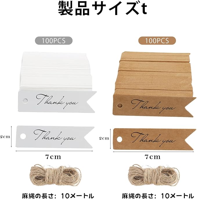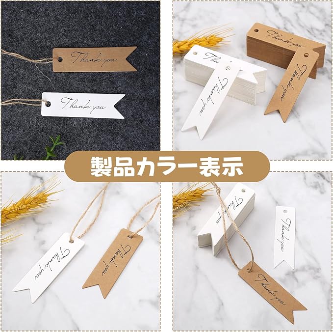 【高品質の素材】サンキュータグは高品質のクラフト紙材質とホワイトカード材質で製作され、非常に丈夫で、頑丈で厚い、耐摩耗性が、引き裂きにくい。天然のジュートより糸が付属しており、どこにでも簡単に掛けることができます。