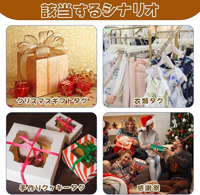 【幅広い用途】ギフトタグ、カップケーキ、結婚式、感謝祭、お祝い、バーティー、ギフトボックスタグ、手作りクッキータグ、クリスマスギフトタグ、衣類タグ、DIY手作りアイテムなどに最適です。ギフトカード、手作りやその他の製品、友人や親戚のための非常に特殊でユニークなタグです。