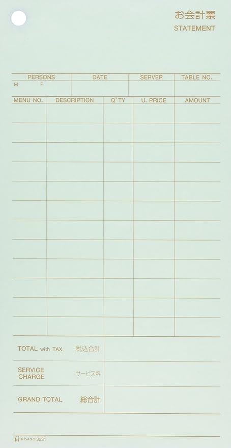 ヒサゴ お会計票3枚複写 税サービス付(200セット入) 3231
