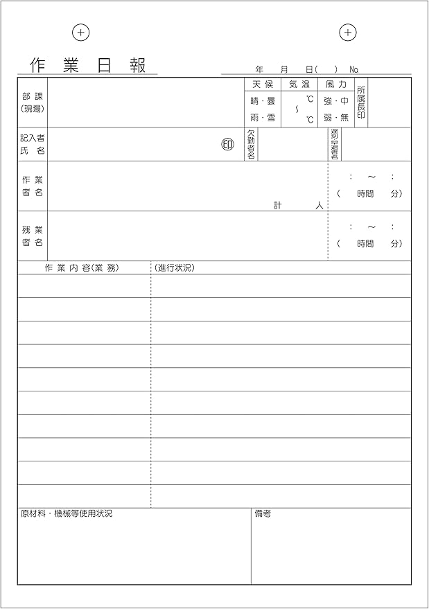 伝票印刷のプリジョイ 作業日報 2枚複写50組10冊 ノーカーボン (B6) 天2穴