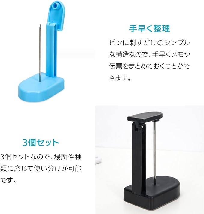 ピンに刺すだけのシンプルな構造なので、手早くメモや伝票をまとめておくことができます。