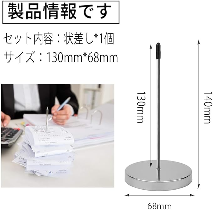 状差し ペーパー差し 伝票差し オフィス レストラン メモホルダー パンチ状差し 耐久性 レシート 領収書 紙 注文 整理 受付カウンター用 レシートホルダー紙メモホルダー用 (シルバー)