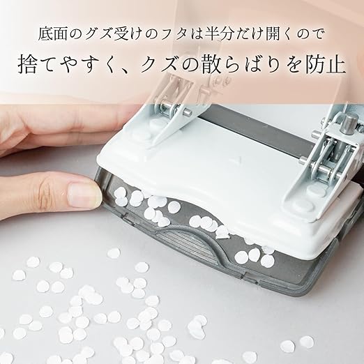 ●机上2穴パンチの決定版●軽い、小さい、美しい。二重テコ【アシストリンクシステム】搭載で用紙穴あけ時の負荷を軽減。●二重テコ搭載により、従来品と変わらないコンパクトサイズです。●使用しない時はハンドルロック機能でデスク引き出しにコンパクトに収納できます。