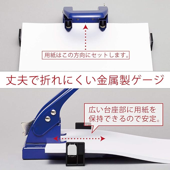 紙台が広く、金属製のサイドゲージを採用している為、用紙が垂れにくく安定した穴あけが可能です。
