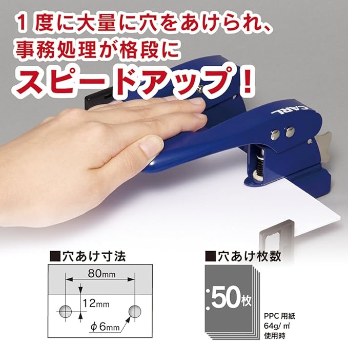 穴あけ枚数も50枚と大量にあけられる為、オフィスでの共有物に適しており、