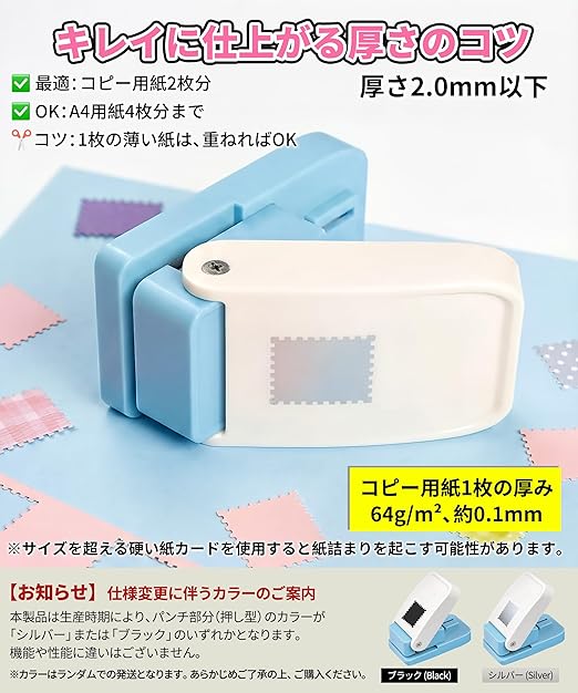 ✅【用紙の厚さの目安】A4用紙4枚分の厚さ未満が適しています。コピー用紙2枚程度の厚さが最適です。薄い紙(コピー用紙1枚程度)の場合は、2~3枚重ねて適度な厚みにして使用すると綺麗に抜けます。(コピー用紙1枚の厚み:64g/m2、約0.1mm) (厚さ2.0mm以下)