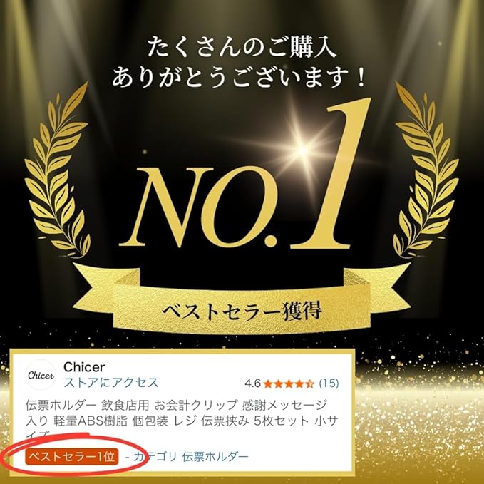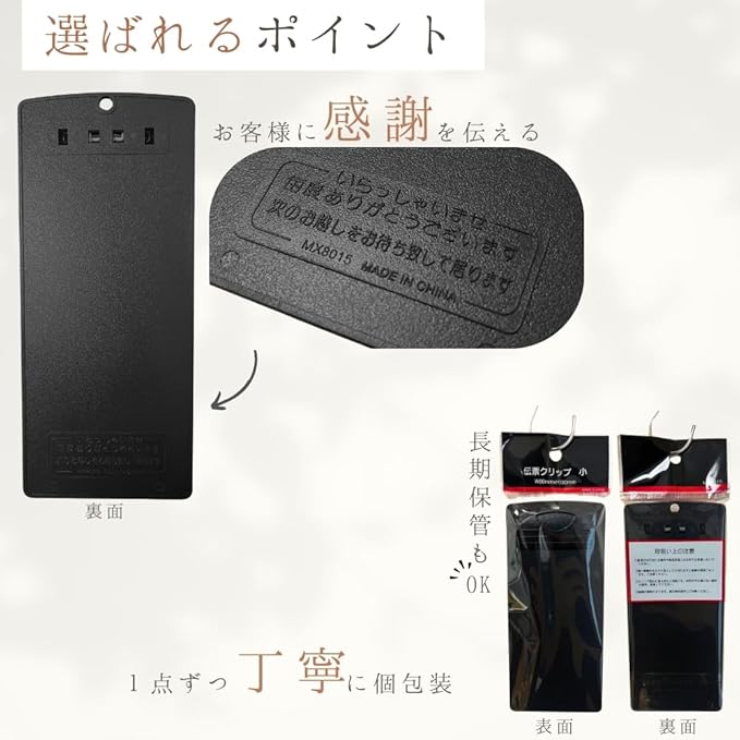 Chicer 伝票ホルダー 飲食店用 お会計クリップ 感謝メッセージ入り 軽量ABS樹脂 個包装 レジ 伝票挟み 5枚セット 中サイズ