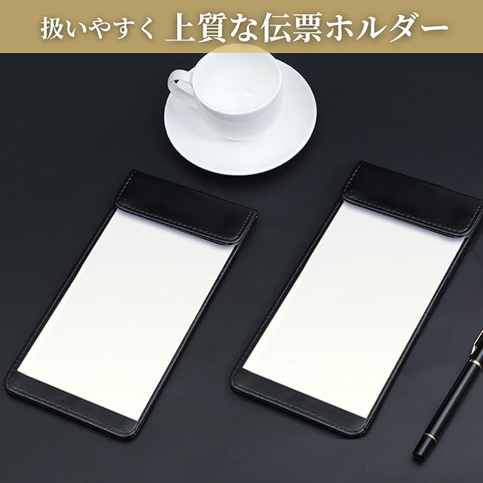 伝票ホルダー レザー 伝票クリップ 伝票バインダー 高級 オーダーバインダー 合皮 飲食店 黒 (5)