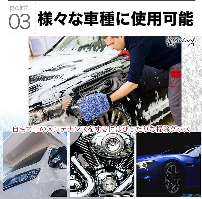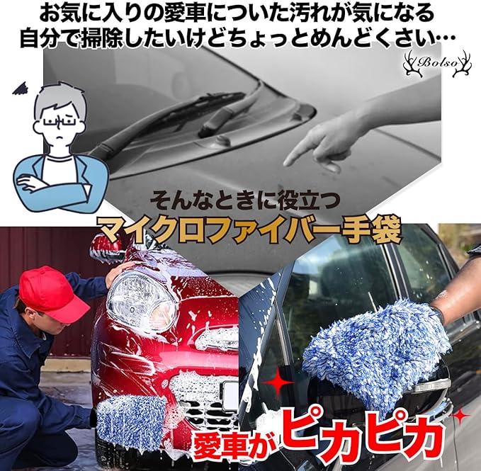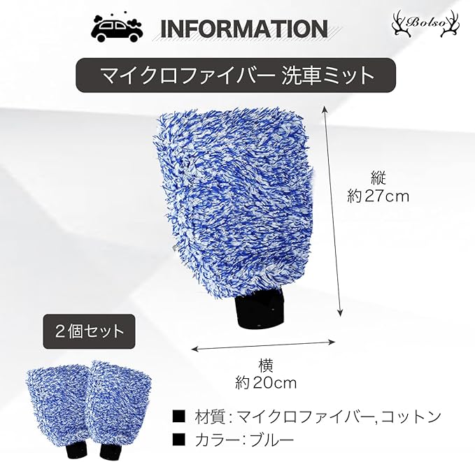 BOLSO マイクロファイバー 洗車ミット 洗車グローブ 2枚 セット 洗車 カーウォッシュ グローブ ミット (ブルー2枚)