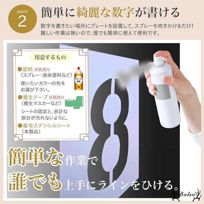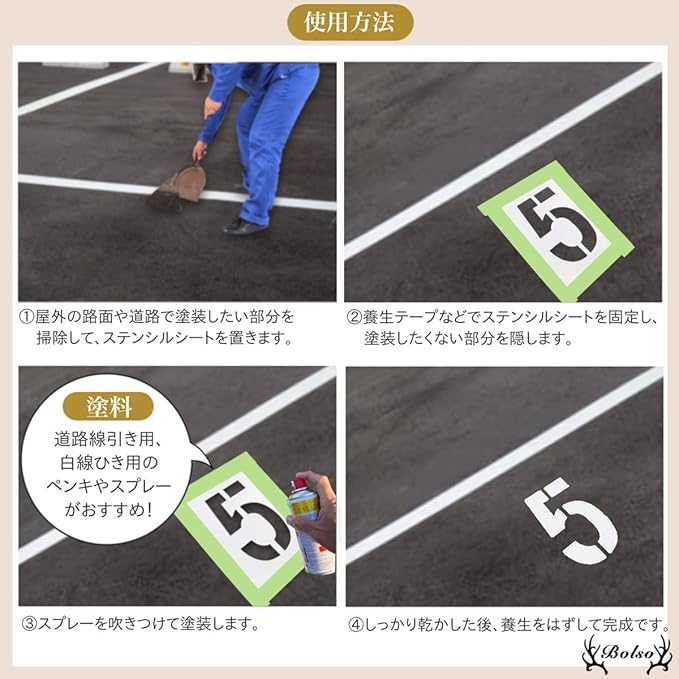 BOLSO 駐車場 番号 線引き ステンシル プレート 白線 ナンバー 数字 ライン シート スプレー 吹きつけ (30cm)