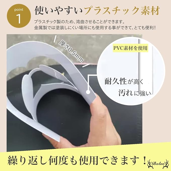 プラスチック素材で湾曲も可能なため、金属製では塗装しにくいところへも使用することができます。また、汚れに強く丈夫な素材のため繰り返しご使用いただくことが可能で、駐車場管理費用を抑える事が出来ます!