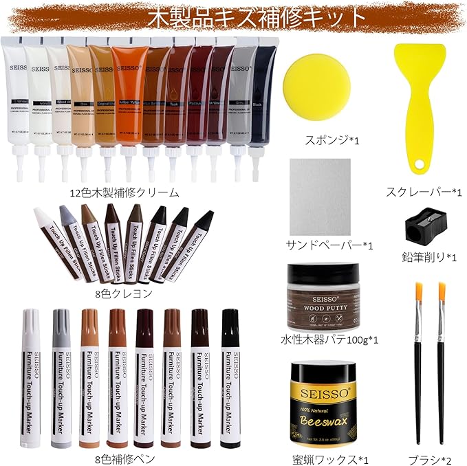 SEISSO 木製品補修キット フローリング補修 (全36枚セット)