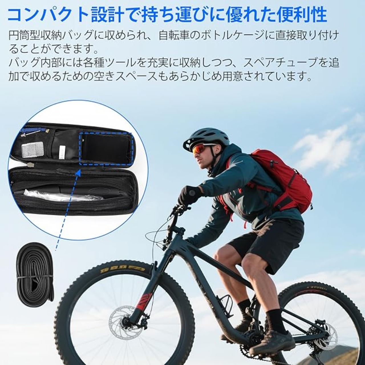 【大容量ボトルケージバッグ付き】:収納バッグ、自転車のボトルケージに取り付けることができます。バッグの中にはたくさんのツールが入っていますが、スペアチューブを追加して置くことができる空きスペースも用意されています。ママチャリ、クロスバイク、サイクリング、ロードバイクやマウンテンバイクなど、ほとんどの自転車に適しています。