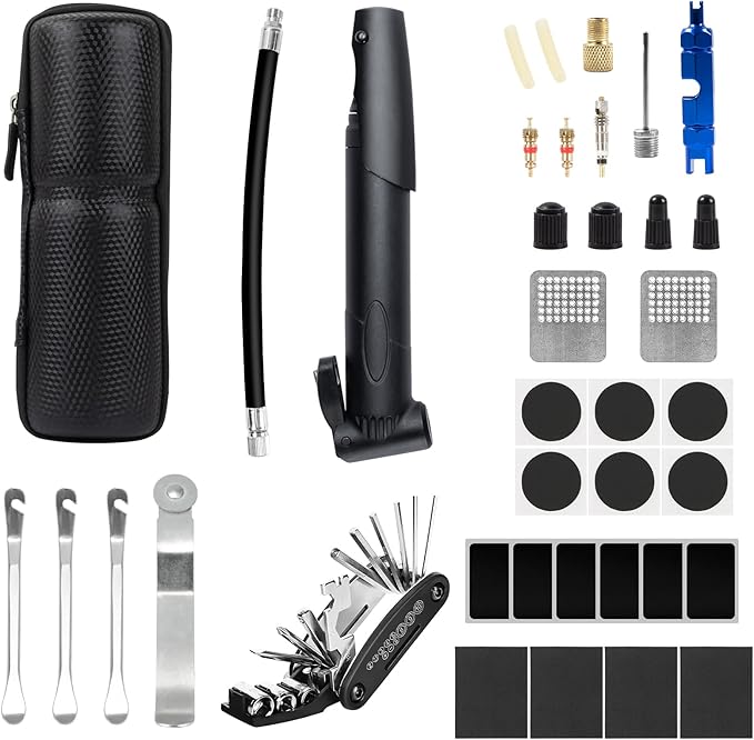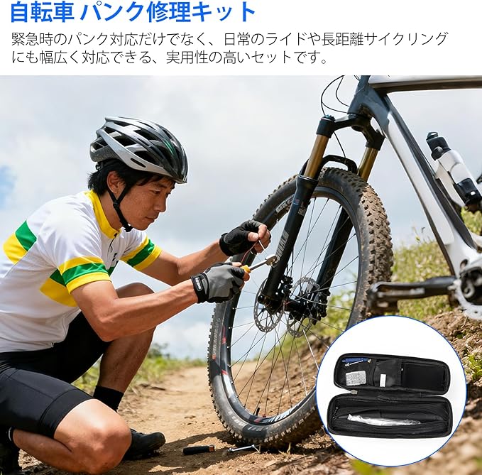 【2025新登場充実の自転車パンク修理キット】パンク修理キット、空気入れセット、16-in-1マルチツール、円筒型収納バッグ、バルブセット、合計38点が含まれています。自転車修理キットはやはり常備しやすくなっています。いつでも対応できるので、安心です